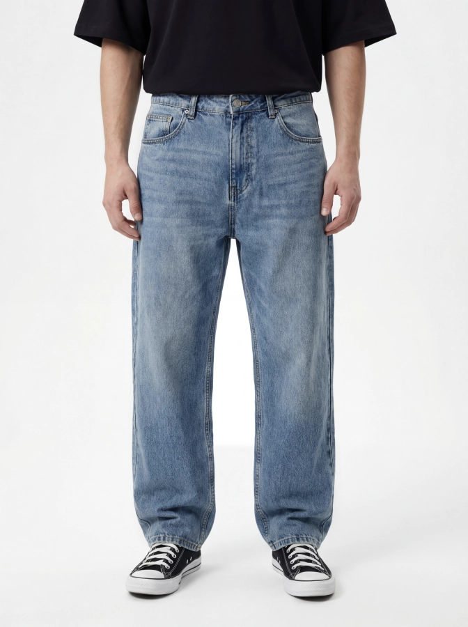 Джинсы Baggy — свободная и стильная модель, созданная для комфорта и актуального уличного образа. Крой baggy обеспечивает расслабленную посадку и свободу движений, создавая современный городской силуэт. Выполнены из 100% хлопкового денима, который отличается прочностью, долговечностью и натуральной текстурой. Ткань мягкая, воздухопроницаемая и комфортна для ежедневной носки. Модель без принтов, что делает джинсы универсальной основой гардероба. Они легко сочетаются с футболками, свитшотами, худи и куртками, вписываясь в стиль casual и streetwear. Подходят для демисезонного периода и повседневной городской жизни.