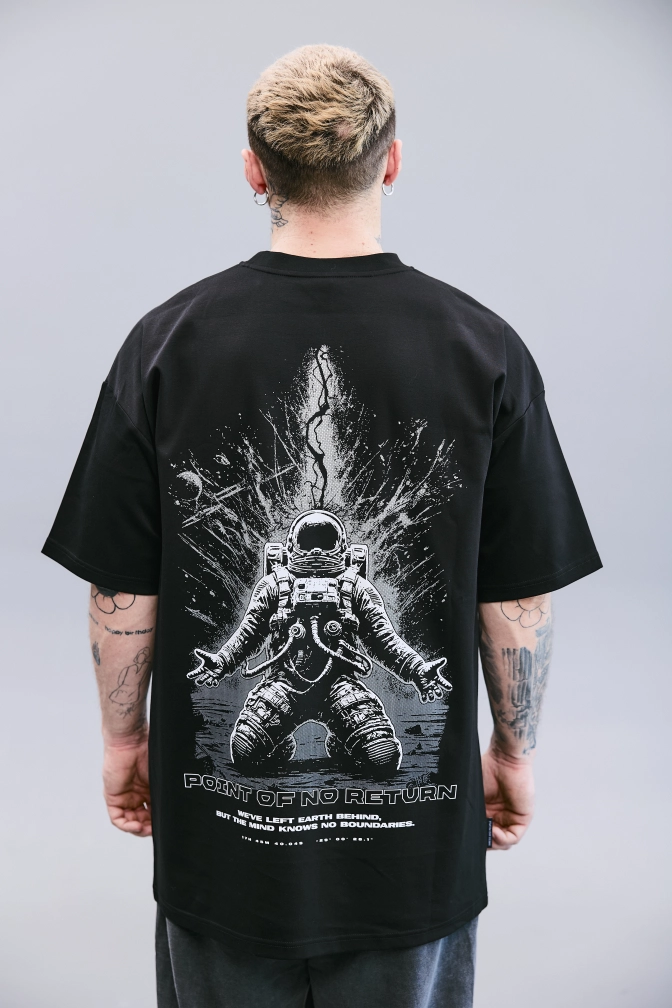 Лимитированная Футболка Oversize "Point of No Return" — часть коллекции Universe`86, созданная в честь Дня космонавтики, 12 апреля. Модель выполнена из 100% хлопка лёгкой плотности, обеспечивающего комфорт, воздухопроницаемость и приятные тактильные ощущения. Свободный oversize-крой подчёркивает расслабленную посадку и идеально вписывается в эстетику современного стритстайла. Атмосферный принт "Point of No Return" символизирует момент выхода за пределы привычного — точку, откуда начинается новое открытие.